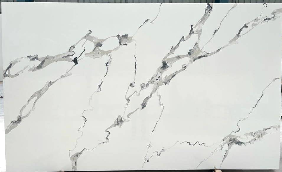This ideal surface brings an extra touch of class to any design project, featuring an ivory white background sculpted with bold veining and tones that vary from dark gray to beige, pink, and orange. Its elegant appearance is perfect for creating sophisticated kitchen countertops and backsplashes.