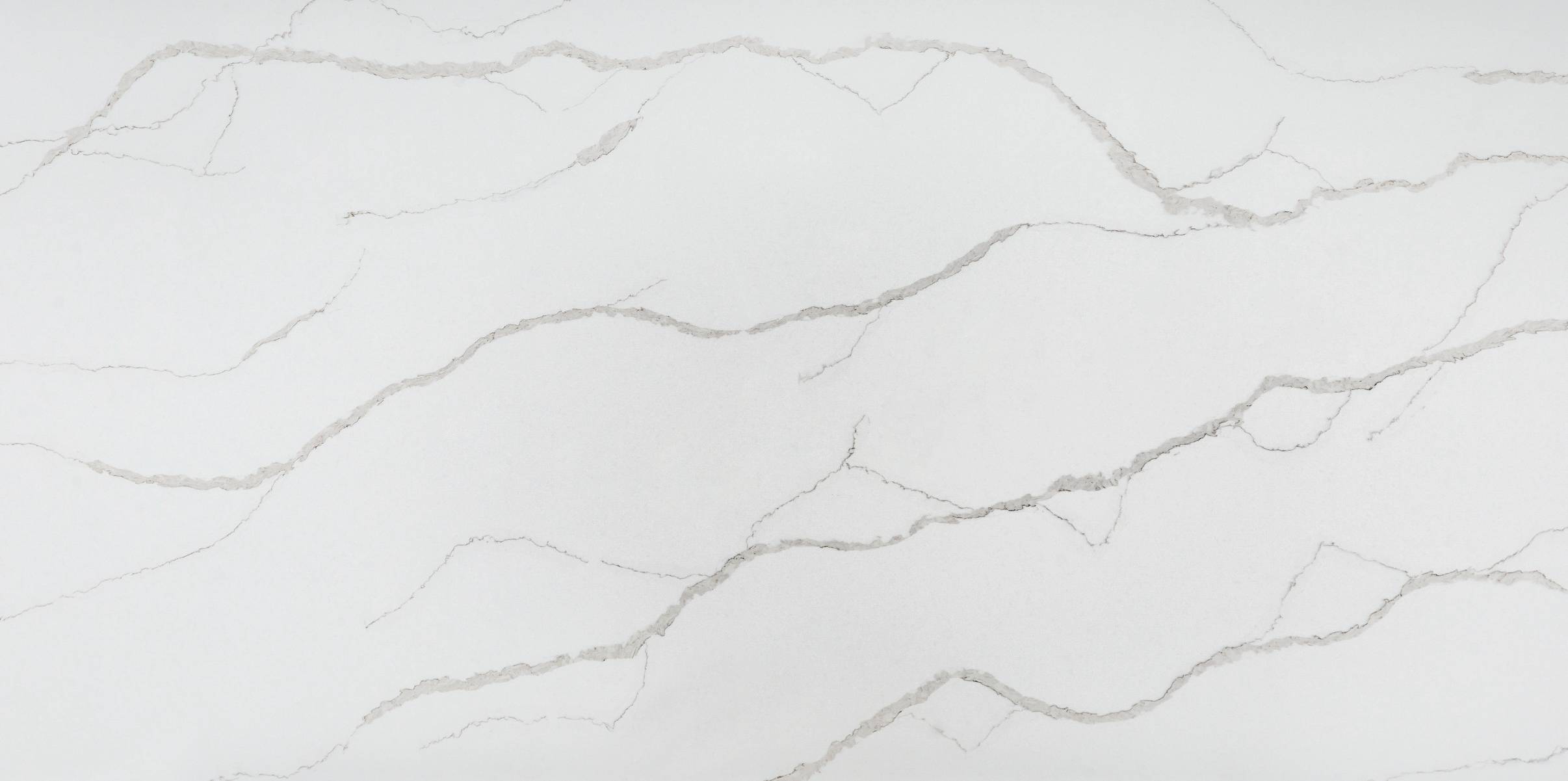 This elegant material features a brilliant white background defined by bold, expansive veining that imparts a sophisticated and opulent aesthetic. The striking veins make a dramatic impression, visually enhancing any home space, particularly when used for kitchen or bathroom surfaces.