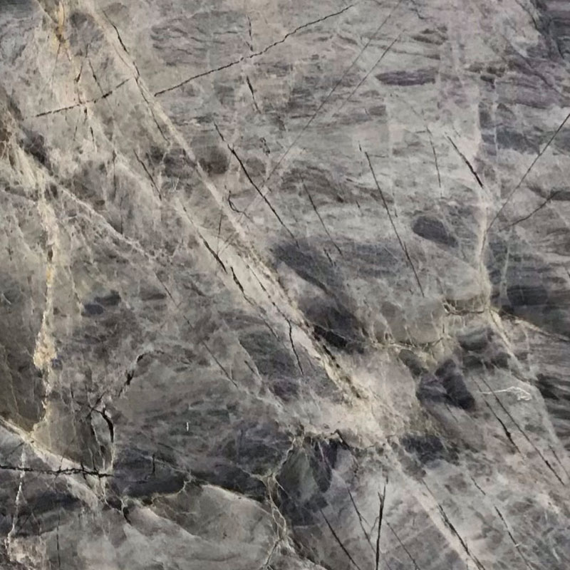 This material, sourced from Brazil, offers a cool-toned background of light blue, beautifully contrasted by dispersed blue and gold veining. It is sturdy and durable, making it a popular choice for kitchen countertops due to its greater resistance and marble-like appearance. It is available in polished and satin finishes, with stocked thicknesses of 3/4″ (2cm slab) and 1-1/4″ (3cm slab).